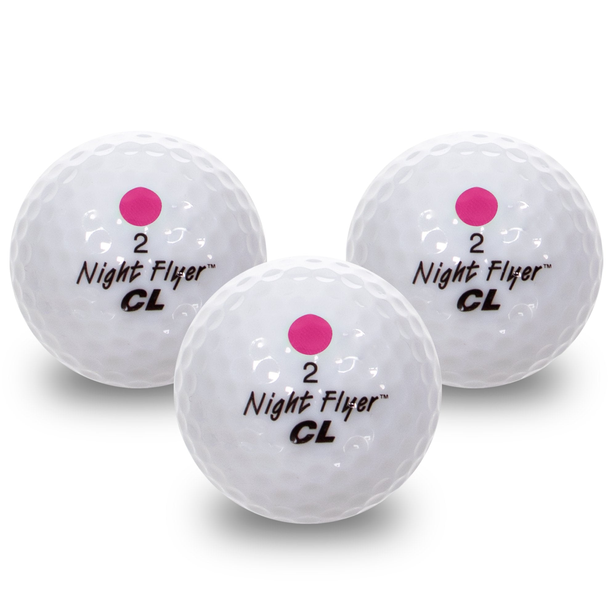 Yes, it's finally here, our Night Flyer CONSTANT-ON RETRIGGER Lighted Golf Ball 3 PACK Retail Package. This NEW, PEGGABLE, Retail Package contains 3 Pink Night Flyer RETRIGGER Illuminated Golf Balls. Our retrigger balls will keep the ball constantly illuminated as long as the ball senses a hit at least every 8 - 10 minutes. THE BALL FOR THE GOLFER WHO HAS EVERYTHING! Please order by the individual retail package (3 balls). Night Flyer Golf Balls are protected by Patent Patent # 6,042,487.