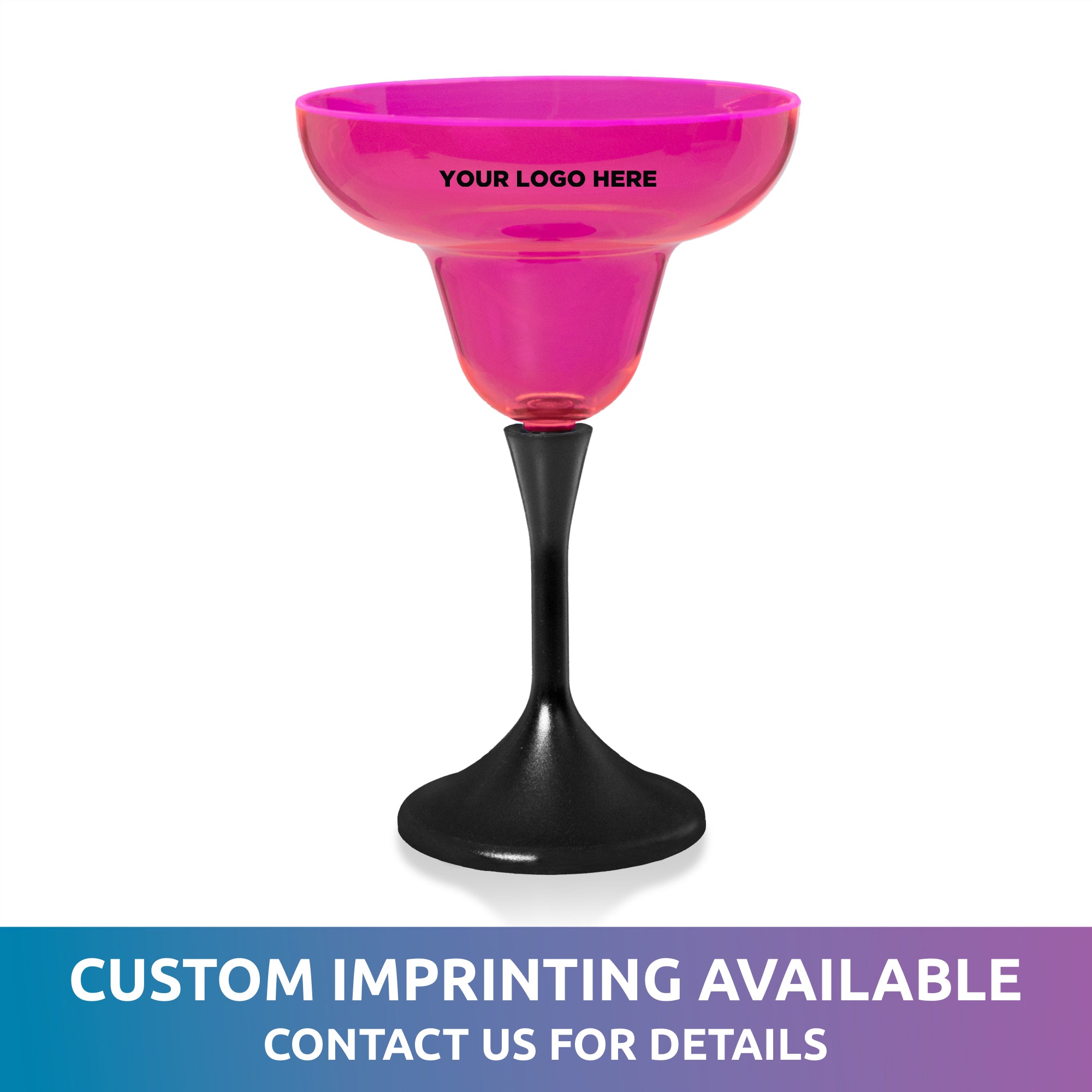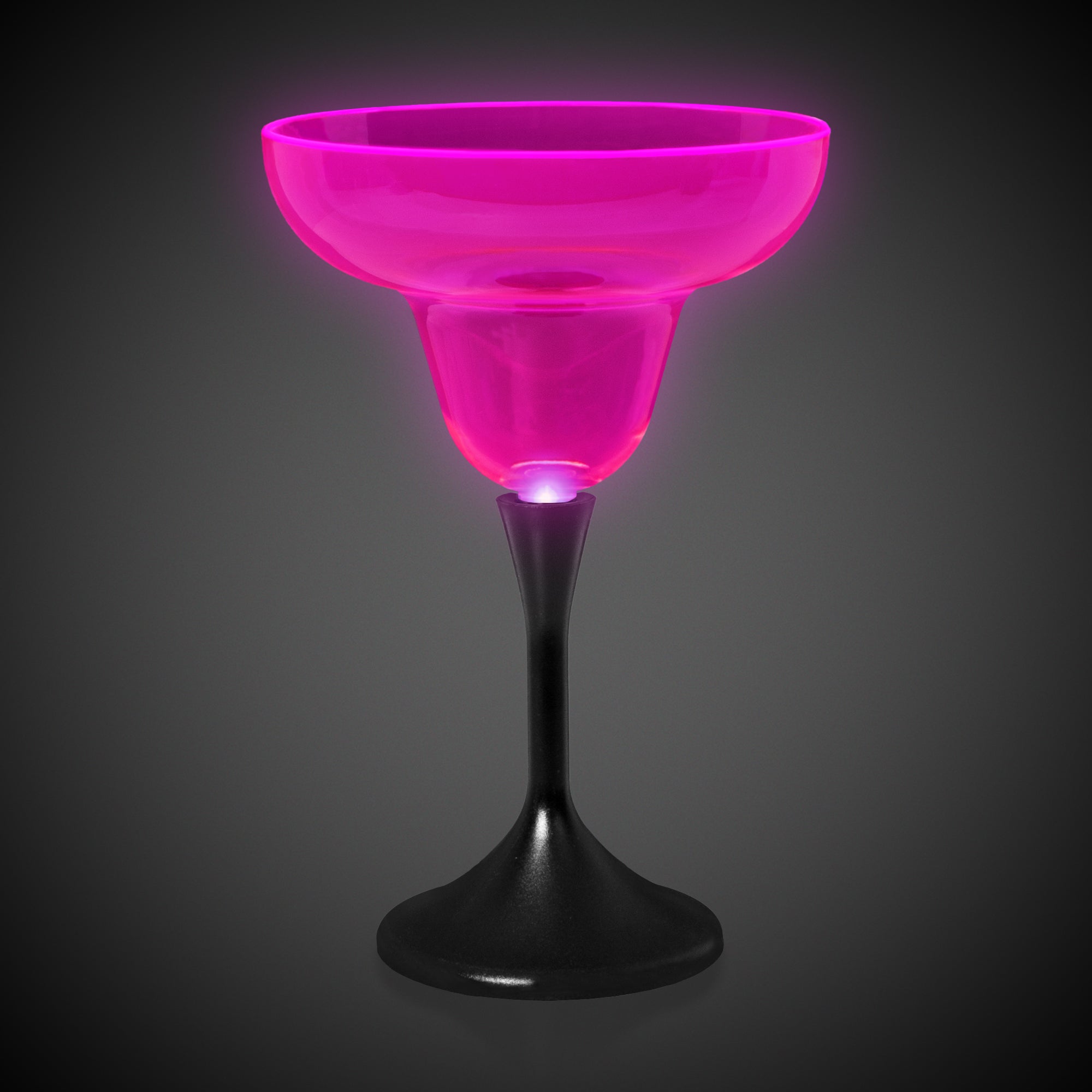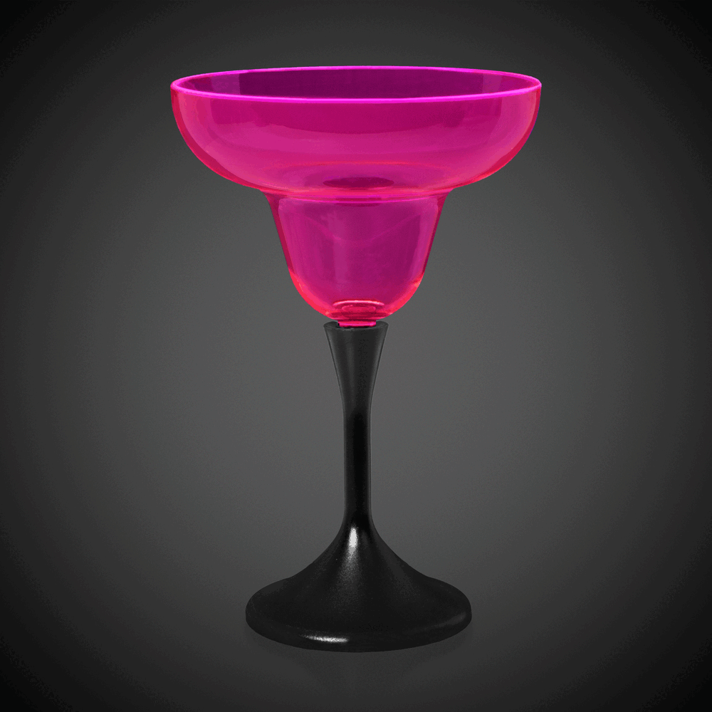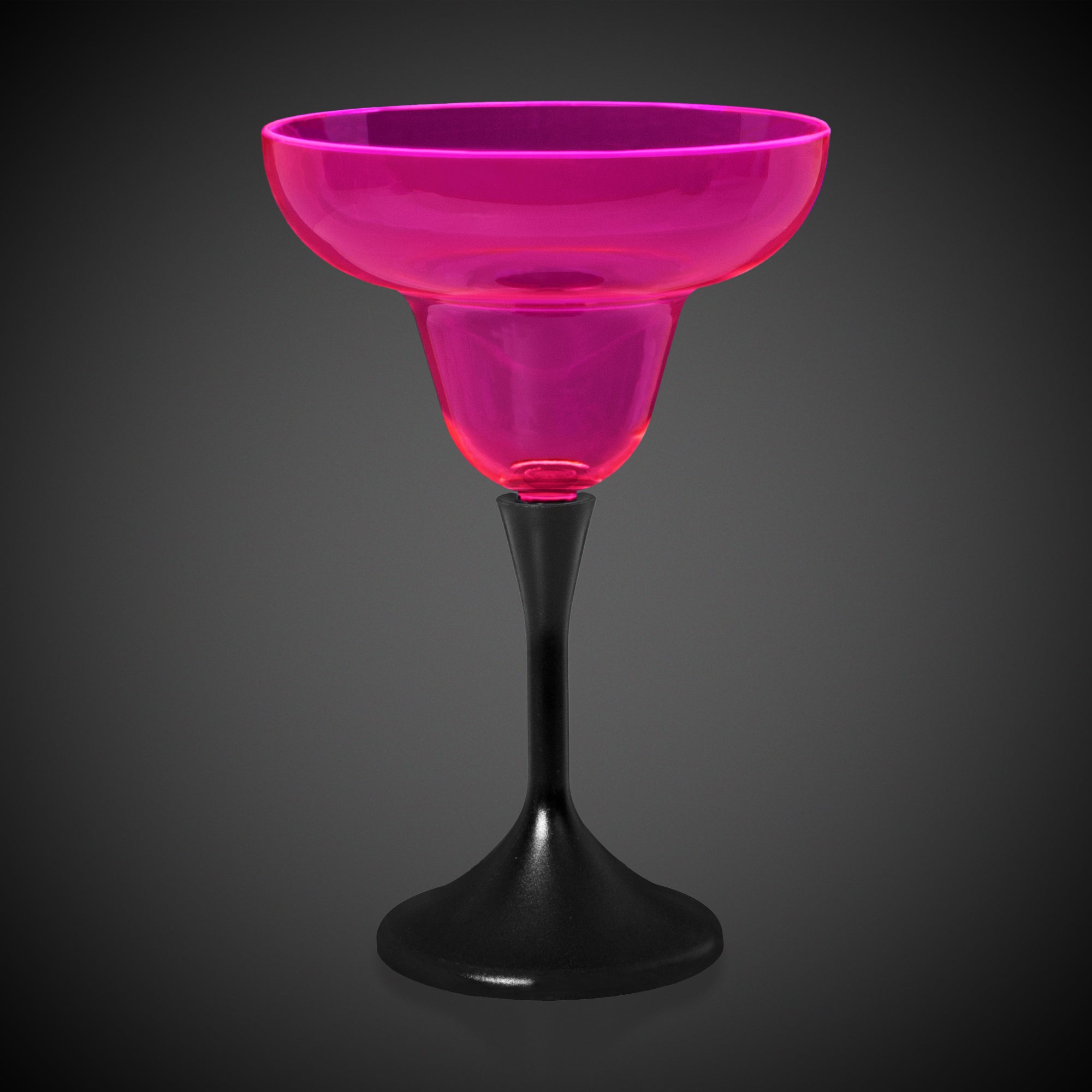 Serve up a sizzling signature cocktail at your next brightly colored event when you add our 10 oz Neon Pink LED Black Stem Margarita Glass to your party decoration. This black light-up stemware features a plastic neon pink top and a built-in blue LED to create an awesome look during the day, in the dark, and under a black light, too! Batteries are included & installed. Hand-wash only.